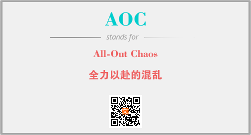 上述内容是“All-Out Chaos”作为“AOC”的缩写,解释为“全力以赴的混乱”时的信息,以及英文缩略词AOC所代表的英文单词,其对应的中文拼音、详细解释以及在英文中的流行度和相关分类、应用领域及应用示例等。