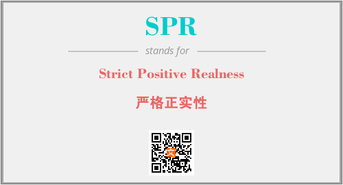 英文缩略词“SPR”经常作为“Strict Positive Realness”的英文缩写来使用,中文表示:“严格正实性”。本文将详细介绍英文缩写词SPR所代表英文单词,其对应的中文拼音、详细解释以及在英语中的流行度。此外,还有关于缩略词SPR的分类、应用领域及相关应用示例等。