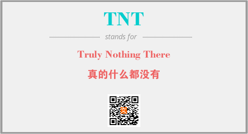 英文缩略词“TNT”经常作为“Truly Nothing There”的英文缩写来使用,中文表示:“真的什么都没有”。本文将详细介绍英文缩写词TNT所代表英文单词,其对应的中文拼音、详细解释以及在英语中的流行度。此外,还有关于缩略词TNT的分类、应用领域及相关应用示例等。