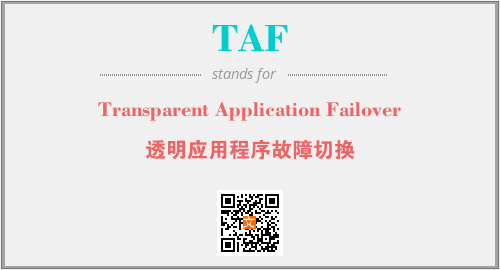 上述内容是“Transparent Application Failover”作为“TAF”的缩写,解释为“透明应用程序故障切换”时的信息,以及英文缩略词TAF所代表的英文单词,其对应的中文拼音、详细解释以及在英文中的流行度和相关分类、应用领域及应用示例等。