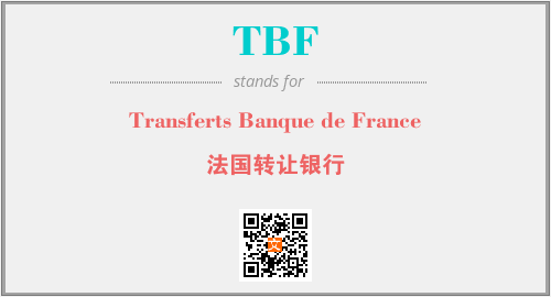 以上为Transferts Banque de France英文缩略词TBF的中文解释,以及该英文缩写在英语的流行度、分类和应用领域方面的信息。