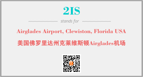 上述内容是“Airglades Airport, Clewiston, Florida USA”作为“2IS”的缩写,解释为“美国佛罗里达州克莱维斯顿Airglades机场”时的信息,以及英文缩略词2IS所代表的英文单词,其对应的中文拼音、详细解释以及在英文中的流行度和相关分类、应用领域及应用示例等。