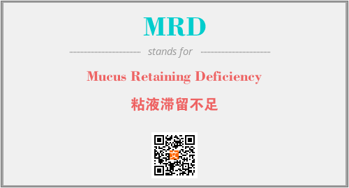 上述内容是“Mucus Retaining Deficiency”作为“MRD”的缩写,解释为“粘液滞留不足”时的信息,以及英文缩略词MRD所代表的英文单词,其对应的中文拼音、详细解释以及在英文中的流行度和相关分类、应用领域及应用示例等。