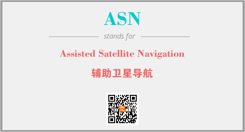 上述内容是“Assisted Satellite Navigation”作为“ASN”的缩写,解释为“辅助卫星导航”时的信息,以及英文缩略词ASN所代表的英文单词,其对应的中文拼音、详细解释以及在英文中的流行度和相关分类、应用领域及应用示例等。