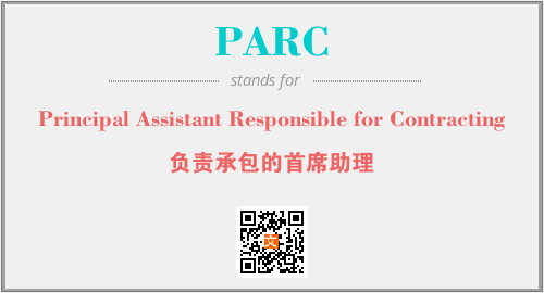 英文缩略词“PARC”经常作为“Principal Assistant Responsible for Contracting”的英文缩写来使用,中文表示:“负责承包的首席助理”。本文将详细介绍英文缩写词PARC所代表英文单词,其对应的中文拼音、详细解释以及在英语中的流行度。此外,还有关于缩略词PARC的分类、应用领域及相关应用示例等。