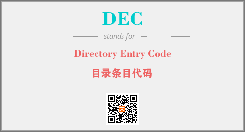 上述内容是“Directory Entry Code”作为“DEC”的缩写,解释为“目录条目代码”时的信息,以及英文缩略词DEC所代表的英文单词,其对应的中文拼音、详细解释以及在英文中的流行度和相关分类、应用领域及应用示例等。