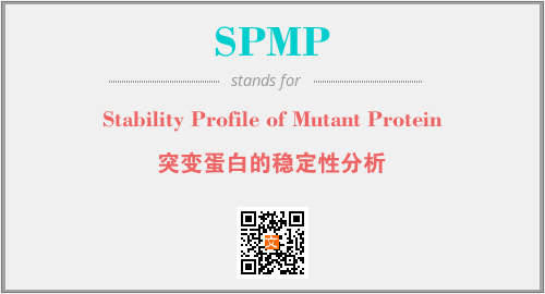 上述内容是“Stability Profile of Mutant Protein”作为“SPMP”的缩写,解释为“突变蛋白的稳定性分析”时的信息,以及英文缩略词SPMP所代表的英文单词,其对应的中文拼音、详细解释以及在英文中的流行度和相关分类、应用领域及应用示例等。