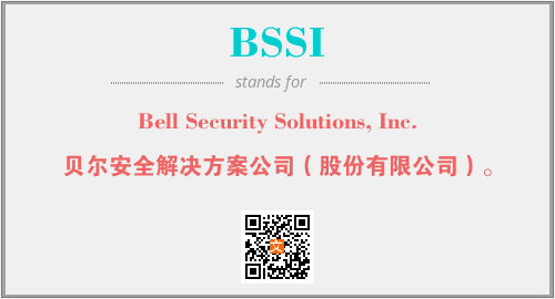 上述内容是“Bell Security Solutions, Inc.”作为“BSSI”的缩写,解释为“贝尔安全解决方案公司(股份有限公司)。”时的信息,以及英文缩略词BSSI所代表的英文单词,其对应的中文拼音、详细解释以及在英文中的流行度和相关分类、应用领域及应用示例等。