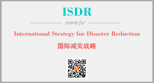 以上为International Strategy for Disaster Reduction英文缩略词ISDR的中文解释,以及该英文缩写在英语的流行度、分类和应用领域方面的信息。