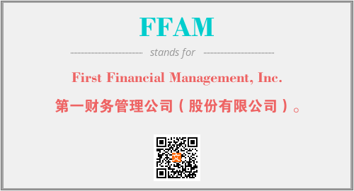 上述内容是“First Financial Management, Inc.”作为“FFAM”的缩写,解释为“第一财务管理公司(股份有限公司)。”时的信息,以及英文缩略词FFAM所代表的英文单词,其对应的中文拼音、详细解释以及在英文中的流行度和相关分类、应用领域及应用示例等。