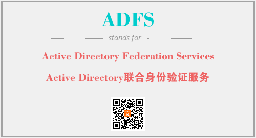 英文缩略词“ADFS”经常作为“Active Directory Federation Services”的英文缩写来使用,中文表示:“Active Directory联合身份验证服务”。本文将详细介绍英文缩写词ADFS所代表英文单词,其对应的中文拼音、详细解释以及在英语中的流行度。此外,还有关于缩略词ADFS的分类、应用领域及相关应用示例等。