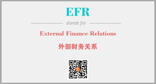 上述内容是“External Finance Relations”作为“EFR”的缩写,解释为“外部财务关系”时的信息,以及英文缩略词EFR所代表的英文单词,其对应的中文拼音、详细解释以及在英文中的流行度和相关分类、应用领域及应用示例等。