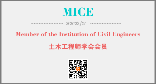 上述内容是“Member of the Institution of Civil Engineers”作为“MICE”的缩写,解释为“土木工程师学会会员”时的信息,以及英文缩略词MICE所代表的英文单词,其对应的中文拼音、详细解释以及在英文中的流行度和相关分类、应用领域及应用示例等。