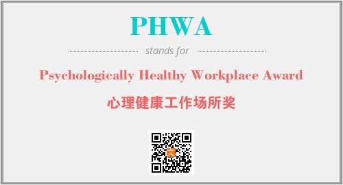 以上为Psychologically Healthy Workplace Award英文缩略词PHWA的中文解释,以及该英文缩写在英语的流行度、分类和应用领域方面的信息。