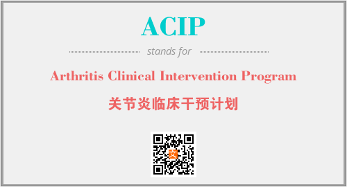 英文缩略词“ACIP”经常作为“Arthritis Clinical Intervention Program”的英文缩写来使用,中文表示:“关节炎临床干预计划”。本文将详细介绍英文缩写词ACIP所代表英文单词,其对应的中文拼音、详细解释以及在英语中的流行度。此外,还有关于缩略词ACIP的分类、应用领域及相关应用示例等。