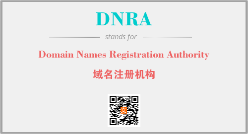 上述内容是“Domain Names Registration Authority”作为“DNRA”的缩写,解释为“域名注册机构”时的信息,以及英文缩略词DNRA所代表的英文单词,其对应的中文拼音、详细解释以及在英文中的流行度和相关分类、应用领域及应用示例等。