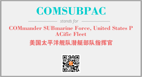 上述内容是“COMmander SUBmarine Force, United States PACific Fleet”作为“COMSUBPAC”的缩写,解释为“美国太平洋舰队潜艇部队指挥官”时的信息,以及英文缩略词COMSUBPAC所代表的英文单词,其对应的中文拼音、详细解释以及在英文中的流行度和相关分类、应用领域及应用示例等。