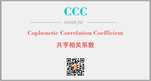 英文缩略词“CCC”经常作为“Cophenetic Correlation Coefficient”的英文缩写来使用,中文表示:“共亨相关系数”。本文将详细介绍英文缩写词CCC所代表英文单词,其对应的中文拼音、详细解释以及在英语中的流行度。此外,还有关于缩略词CCC的分类、应用领域及相关应用示例等。