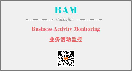 英文缩略词“BAM”经常作为“Business Activity Monitoring”的英文缩写来使用,中文表示:“业务活动监控”。本文将详细介绍英文缩写词BAM所代表英文单词,其对应的中文拼音、详细解释以及在英语中的流行度。此外,还有关于缩略词BAM的分类、应用领域及相关应用示例等。