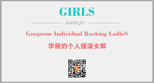 上述内容是“Gorgeous Individual Rocking LadieS”作为“GIRLS”的缩写,解释为“华丽的个人摇滚女郎”时的信息,以及英文缩略词GIRLS所代表的英文单词,其对应的中文拼音、详细解释以及在英文中的流行度和相关分类、应用领域及应用示例等。