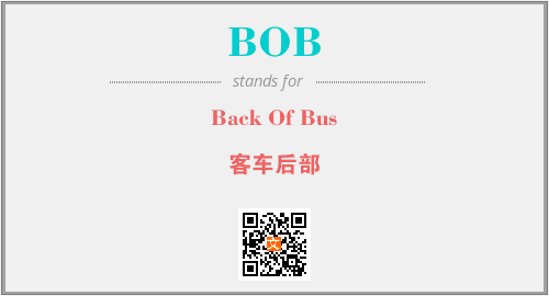 英文缩略词“BOB”经常作为“Back Of Bus”的英文缩写来使用,中文表示:“客车后部”。本文将详细介绍英文缩写词BOB所代表英文单词,其对应的中文拼音、详细解释以及在英语中的流行度。此外,还有关于缩略词BOB的分类、应用领域及相关应用示例等。
