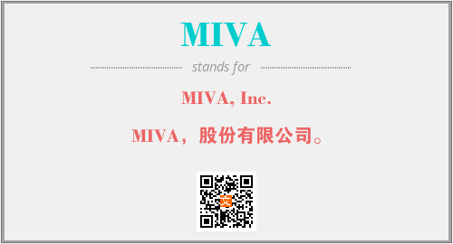 英文缩略词“MIVA”经常作为“MIVA, Inc.”的英文缩写来使用,中文表示:“MIVA,股份有限公司。”。本文将详细介绍英文缩写词MIVA所代表英文单词,其对应的中文拼音、详细解释以及在英语中的流行度。此外,还有关于缩略词MIVA的分类、应用领域及相关应用示例等。