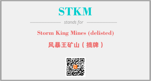 上述内容是“Storm King Mines (delisted)”作为“STKM”的缩写,解释为“风暴王矿山(摘牌)”时的信息,以及英文缩略词STKM所代表的英文单词,其对应的中文拼音、详细解释以及在英文中的流行度和相关分类、应用领域及应用示例等。