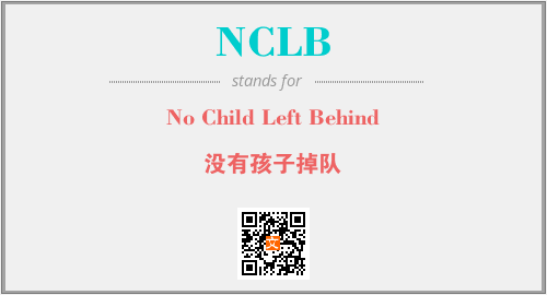 英文缩略词“NCLB”经常作为“No Child Left Behind”的英文缩写来使用,中文表示:“没有孩子掉队”。本文将详细介绍英文缩写词NCLB所代表英文单词,其对应的中文拼音、详细解释以及在英语中的流行度。此外,还有关于缩略词NCLB的分类、应用领域及相关应用示例等。