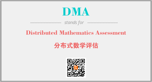 上述内容是“Distributed Mathematics Assessment”作为“DMA”的缩写,解释为“分布式数学评估”时的信息,以及英文缩略词DMA所代表的英文单词,其对应的中文拼音、详细解释以及在英文中的流行度和相关分类、应用领域及应用示例等。