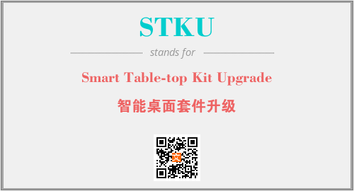 上述内容是“Smart Table-top Kit Upgrade”作为“STKU”的缩写,解释为“智能桌面套件升级”时的信息,以及英文缩略词STKU所代表的英文单词,其对应的中文拼音、详细解释以及在英文中的流行度和相关分类、应用领域及应用示例等。