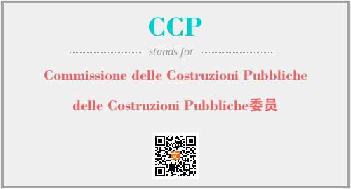 英文缩略词“CCP”经常作为“Commissione delle Costruzioni Pubbliche”的英文缩写来使用,中文表示:“delle Costruzioni Pubbliche委员”。本文将详细介绍英文缩写词CCP所代表英文单词,其对应的中文拼音、详细解释以及在英语中的流行度。此外,还有关于缩略词CCP的分类、应用领域及相关应用示例等。