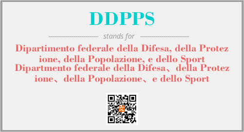 英文缩略词“DDPPS”经常作为“Dipartimento federale della Difesa, della Protezione, della Popolazione, e dello Sport”的英文缩写来使用,中文表示:“Dipartmento federale della Difesa、della Protezione、della Popolazione、e dello Sport”。本文将详细介绍英文缩写词DDPPS所代表英文单词,其对应的中文拼音、详细解释以及在英语中的流行度。此外,还有关于缩略词DDPPS的分类、应用领域及相关应用示例等。