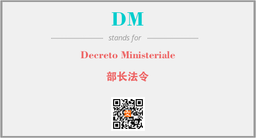 英文缩略词“DM”经常作为“Decreto Ministeriale”的英文缩写来使用,中文表示:“部长法令”。本文将详细介绍英文缩写词DM所代表英文单词,其对应的中文拼音、详细解释以及在英语中的流行度。此外,还有关于缩略词DM的分类、应用领域及相关应用示例等。