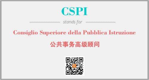 以上为Consiglio Superiore della Pubblica Istruzione英文缩略词CSPI的中文解释,以及该英文缩写在英语的流行度、分类和应用领域方面的信息。