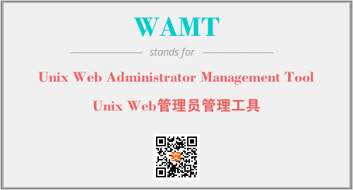 英文缩略词“WAMT”经常作为“Unix Web Administrator Management Tool”的英文缩写来使用,中文表示:“Unix Web管理员管理工具”。本文将详细介绍英文缩写词WAMT所代表英文单词,其对应的中文拼音、详细解释以及在英语中的流行度。此外,还有关于缩略词WAMT的分类、应用领域及相关应用示例等。
