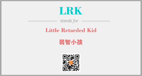 英文缩略词“LRK”经常作为“Little Retarded Kid”的英文缩写来使用,中文表示:“弱智小孩”。本文将详细介绍英文缩写词LRK所代表英文单词,其对应的中文拼音、详细解释以及在英语中的流行度。此外,还有关于缩略词LRK的分类、应用领域及相关应用示例等。