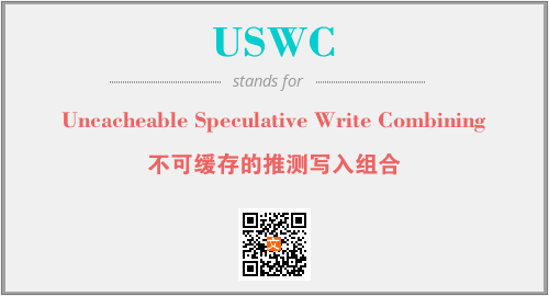 英文缩略词“USWC”经常作为“Uncacheable Speculative Write Combining”的英文缩写来使用,中文表示:“不可缓存的推测写入组合”。本文将详细介绍英文缩写词USWC所代表英文单词,其对应的中文拼音、详细解释以及在英语中的流行度。此外,还有关于缩略词USWC的分类、应用领域及相关应用示例等。
