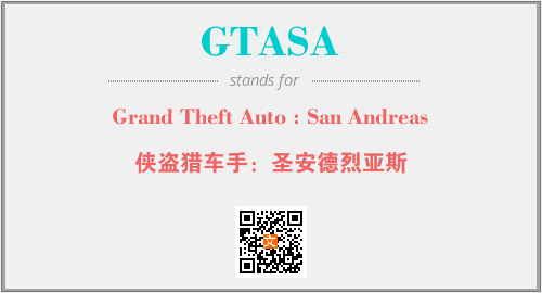 上述内容是“Grand Theft Auto : San Andreas”作为“GTASA”的缩写,解释为“侠盗猎车手:圣安德烈亚斯”时的信息,以及英文缩略词GTASA所代表的英文单词,其对应的中文拼音、详细解释以及在英文中的流行度和相关分类、应用领域及应用示例等。