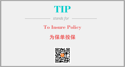 上述内容是“To Insure Policy”作为“TIP”的缩写,解释为“为保单投保”时的信息,以及英文缩略词TIP所代表的英文单词,其对应的中文拼音、详细解释以及在英文中的流行度和相关分类、应用领域及应用示例等。