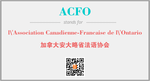 英文缩略词“ACFO”经常作为“l\'Association Canadienne-Francaise de l\'Ontario”的英文缩写来使用,中文表示:“加拿大安大略省法语协会”。本文将详细介绍英文缩写词ACFO所代表英文单词,其对应的中文拼音、详细解释以及在英语中的流行度。此外,还有关于缩略词ACFO的分类、应用领域及相关应用示例等。