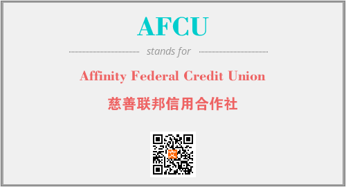 英文缩略词“AFCU”经常作为“Affinity Federal Credit Union”的英文缩写来使用,中文表示:“慈善联邦信用合作社”。本文将详细介绍英文缩写词AFCU所代表英文单词,其对应的中文拼音、详细解释以及在英语中的流行度。此外,还有关于缩略词AFCU的分类、应用领域及相关应用示例等。
