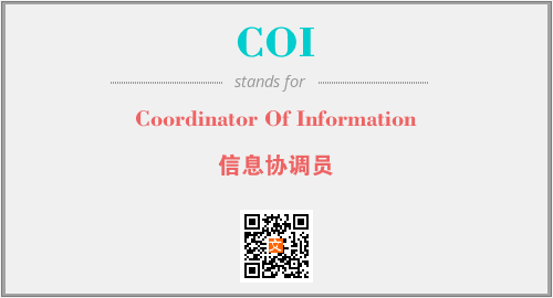 以上为Coordinator Of Information英文缩略词COI的中文解释,以及该英文缩写在英语的流行度、分类和应用领域方面的信息。