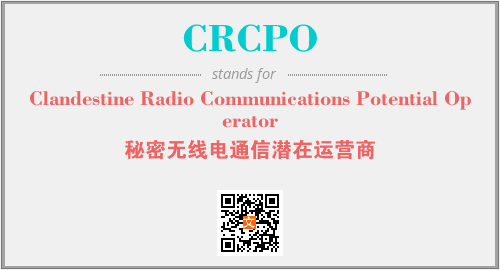 英文缩略词“CRCPO”经常作为“Clandestine Radio Communications Potential Operator”的英文缩写来使用,中文表示:“秘密无线电通信潜在运营商”。本文将详细介绍英文缩写词CRCPO所代表英文单词,其对应的中文拼音、详细解释以及在英语中的流行度。此外,还有关于缩略词CRCPO的分类、应用领域及相关应用示例等。