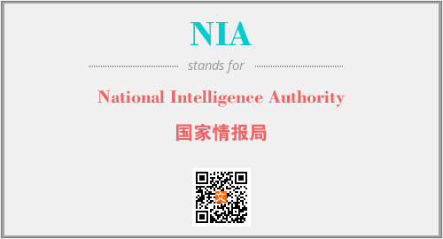 英文缩略词“NIA”经常作为“National Intelligence Authority”的英文缩写来使用,中文表示:“国家情报局”。本文将详细介绍英文缩写词NIA所代表英文单词,其对应的中文拼音、详细解释以及在英语中的流行度。此外,还有关于缩略词NIA的分类、应用领域及相关应用示例等。