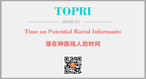上述内容是“Time on Potential Racial Informants”作为“TOPRI”的缩写,解释为“潜在种族线人的时间”时的信息,以及英文缩略词TOPRI所代表的英文单词,其对应的中文拼音、详细解释以及在英文中的流行度和相关分类、应用领域及应用示例等。