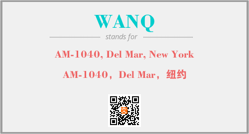 英文缩略词“WANQ”经常作为“AM-1040, Del Mar, New York”的英文缩写来使用,中文表示:“AM-1040,Del Mar,纽约”。本文将详细介绍英文缩写词WANQ所代表英文单词,其对应的中文拼音、详细解释以及在英语中的流行度。此外,还有关于缩略词WANQ的分类、应用领域及相关应用示例等。