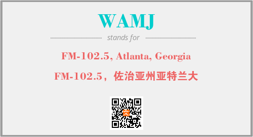 上述内容是“FM-102.5, Atlanta, Georgia”作为“WAMJ”的缩写,解释为“FM-102.5,佐治亚州亚特兰大”时的信息,以及英文缩略词WAMJ所代表的英文单词,其对应的中文拼音、详细解释以及在英文中的流行度和相关分类、应用领域及应用示例等。