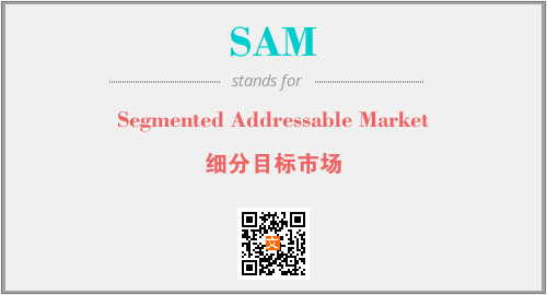 英文缩略词“SAM”经常作为“Segmented Addressable Market”的英文缩写来使用,中文表示:“细分目标市场”。本文将详细介绍英文缩写词SAM所代表英文单词,其对应的中文拼音、详细解释以及在英语中的流行度。此外,还有关于缩略词SAM的分类、应用领域及相关应用示例等。