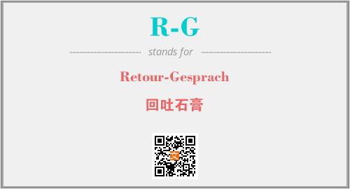上述内容是“Retour-Gesprach”作为“R-G”的缩写,解释为“回吐石膏”时的信息,以及英文缩略词R-G所代表的英文单词,其对应的中文拼音、详细解释以及在英文中的流行度和相关分类、应用领域及应用示例等。