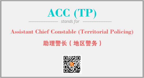 上述内容是“Assistant Chief Constable (Territorial Policing)”作为“ACC (TP)”的缩写,解释为“助理警长(地区警务)”时的信息,以及英文缩略词ACC (TP)所代表的英文单词,其对应的中文拼音、详细解释以及在英文中的流行度和相关分类、应用领域及应用示例等。